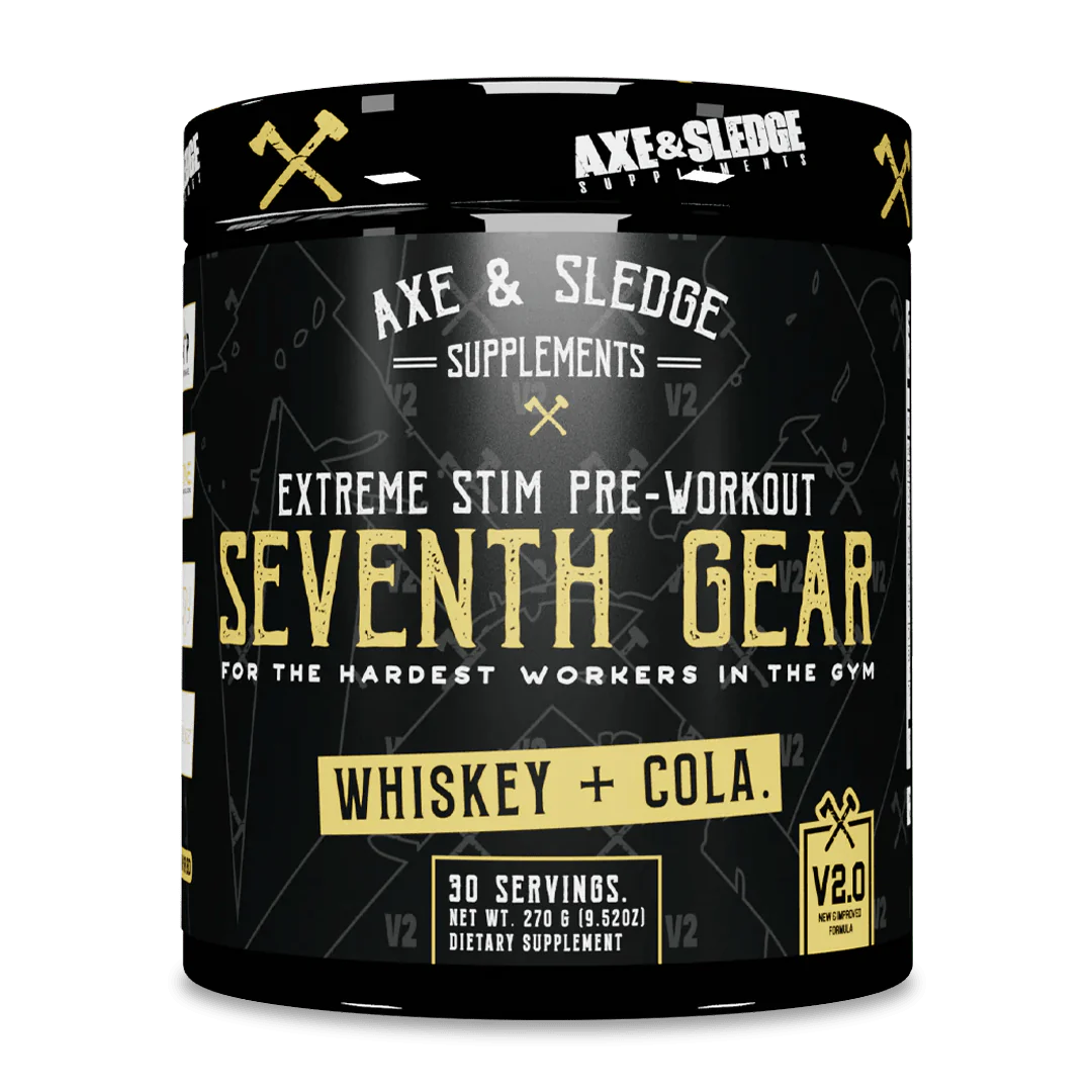 axe and sledge pre workout, SEVENTH GEAR V2 whiskey and cola 30 servings Seventh Gear is a high-stimulant pre-workout containing just under 400 milligrams of caffeine in 2 scoops from fasting-acting caffeine anhydrous and extended-release caffeine malate(as infinergy™). While other high-stim pre-workouts will leave you feeling drained after the workout,...