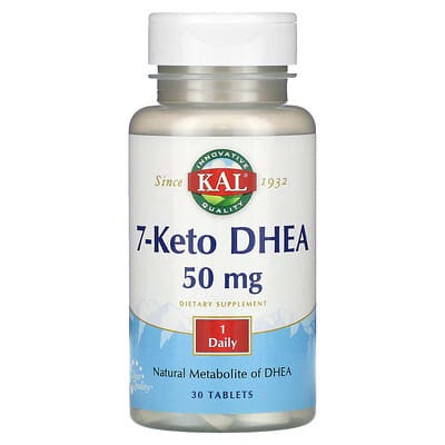 KAL, 7-Keto DHEA, 50 mg, 30 Tablets Innovative Quality Since 1932 Dietary Supplement 1 Daily Natural Metabolite of DHEA Clear Quality™ 7-Keto Dehydroepiandrosterone is a natural metabolite of DHEA. Like DHEA, 7-Keto DHEA is formed naturally within the body. ActivTab™ technology guarantees tablet disintegration within 30 minutes according to USP...
