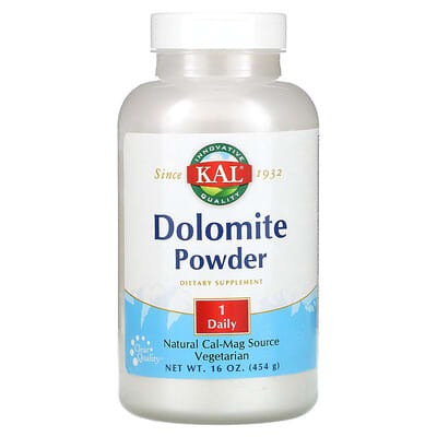 KAL, Dolomite Powder, 16 oz (454 g) Since 1932 Innovative Quality Dietary Supplement 1 Daily Clear Quality® Natural Cal-Mag Source Vegetarian Discussion: KAL® Dolomite Powder is a natural Calcium-Magnesium source. Suggested use Use only as directed. Take 1 serving (5 g) mixed into a beverage or food. More palatable if mixed...