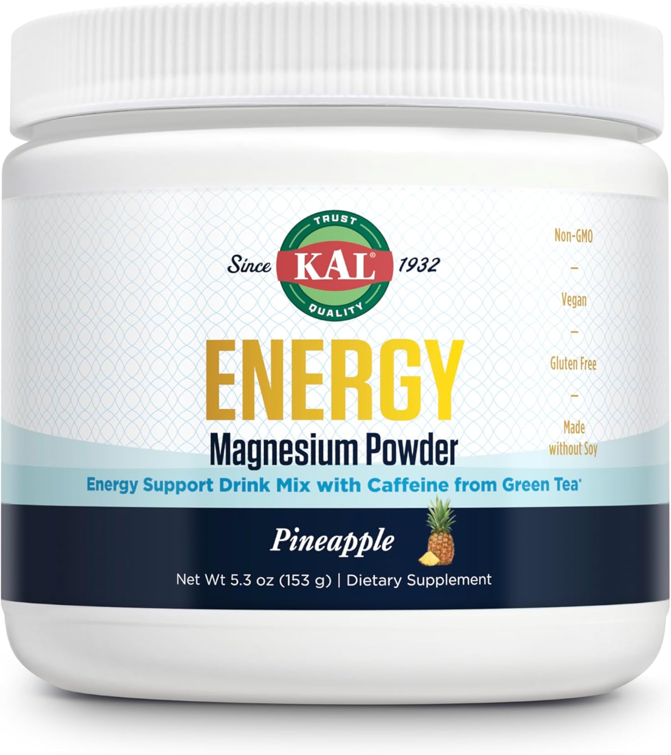 KAL Energy Magnesium Powder Drink, Pineapple Flavor Magnesium Citrate Powder, Energy Support with Green Tea Caffeine, Sugar Free, 40 Servings Energy Boost Magnesium Drink – Energy Magnesium Citrate Powder is fueled by a balanced boost of caffeine from green tea to give you energy as you power through your day.*...