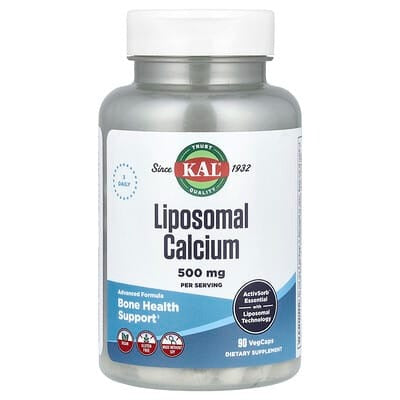KAL, Liposomal Calcium, 90 VegCaps (166.6 mg per Capsule) Trust Quality Since 1932 3 Daily 500 mg Per Serving Advanced Formula Bone Health Support Vegan Gluten Free Made without Soy ActivSorb™ Essential with Liposomal Technology Dietary Supplement Discussion: Calcium is an essential mineral for strong bones and teeth. Liposomes are tiny...