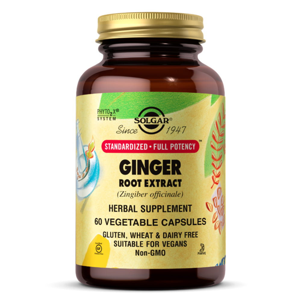 SOLGAR Ginger Root Extract 60 Vegetable CapsulesSolgar’s Standardized • Full Potency  Herbs are developed through a unique process that integrates the ideologies of both traditional herbalism and standardized herbal technology. To ensure consistent and reliable phytonutrient levels, we isolate a controlled amount of these important active plant compounds. Then, we...